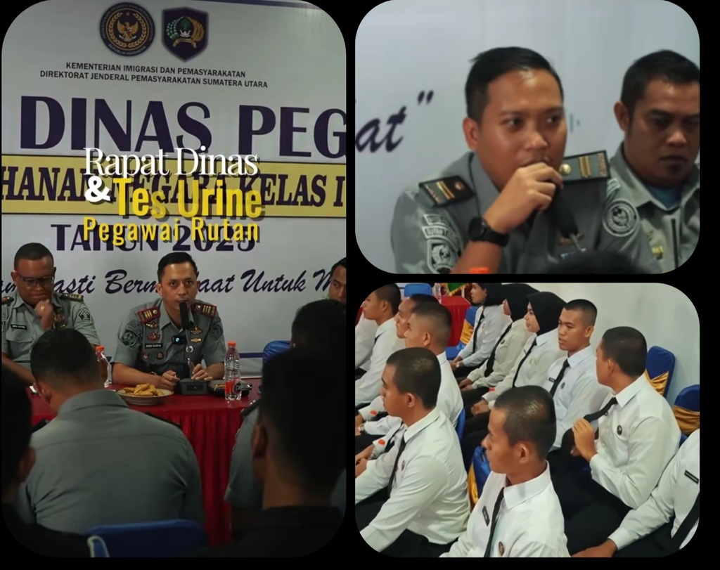 sebarinfo.com, | Rutan Kelas I Medan melaksanakan Rapat Dinas dan Tes Urine secara acak kepada Pegawai dan Warga Binaan pada 7 Juli 2025. Kegiatan ini bertujuan untuk penguatan tugas dan fungsi serta komitmen terhadap pemberantasan narkoba di lingkungan kerja.