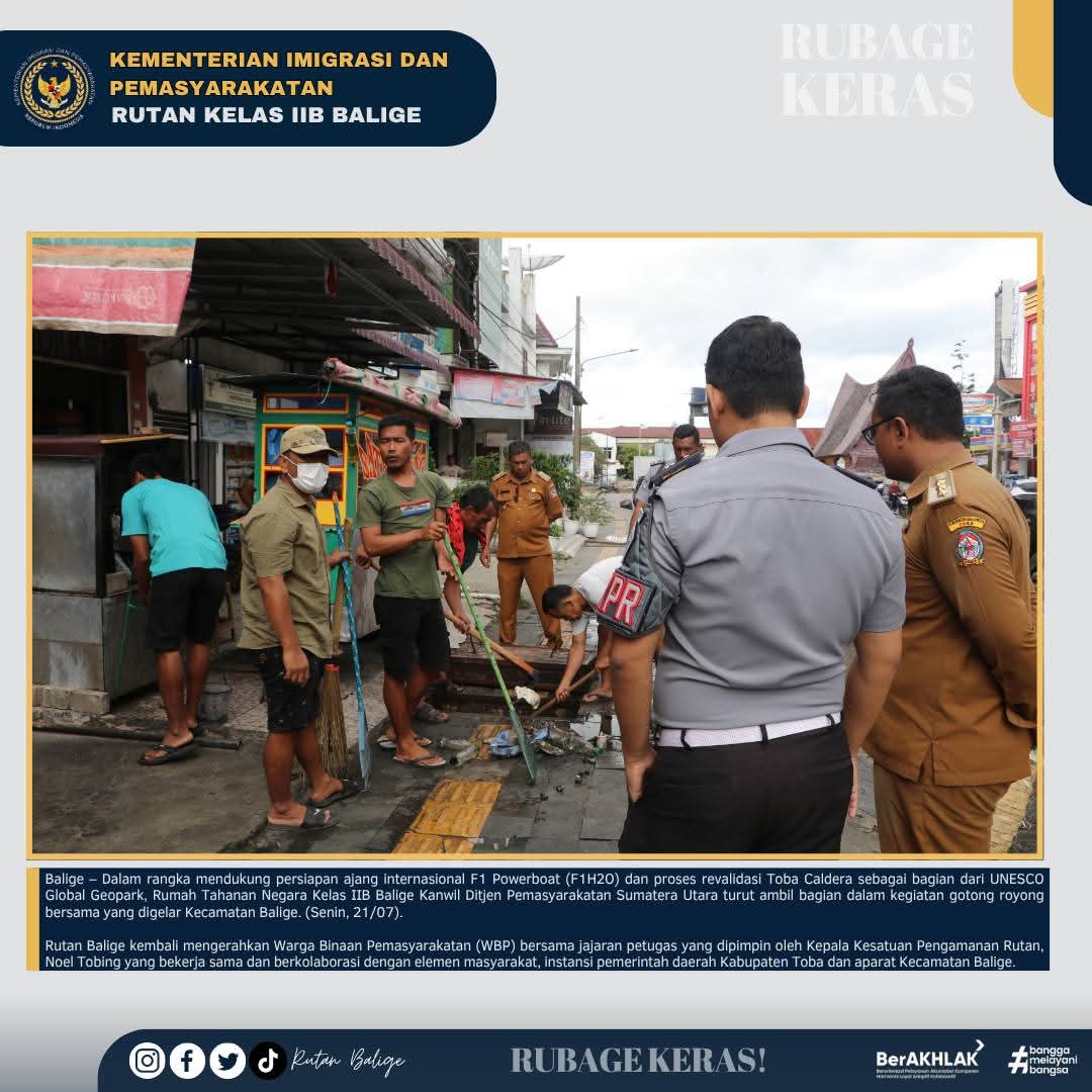 sebarinfo.com, | Balige – Rumah Tahanan Negara Kelas IIB Balige kirimkan Warga Binaan Pemasyarakatan (WBP) dan petugas untuk berpartisipasi dalam kegiatan gotong royong bersama yang digelar Kecamatan Balige. Tujuan kegiatan ini adalah dukung persiapan ajang internasional F1 Powerboat dan revalidasi Toba Caldera sebagai bagian dari UNESCO Global Geopark.