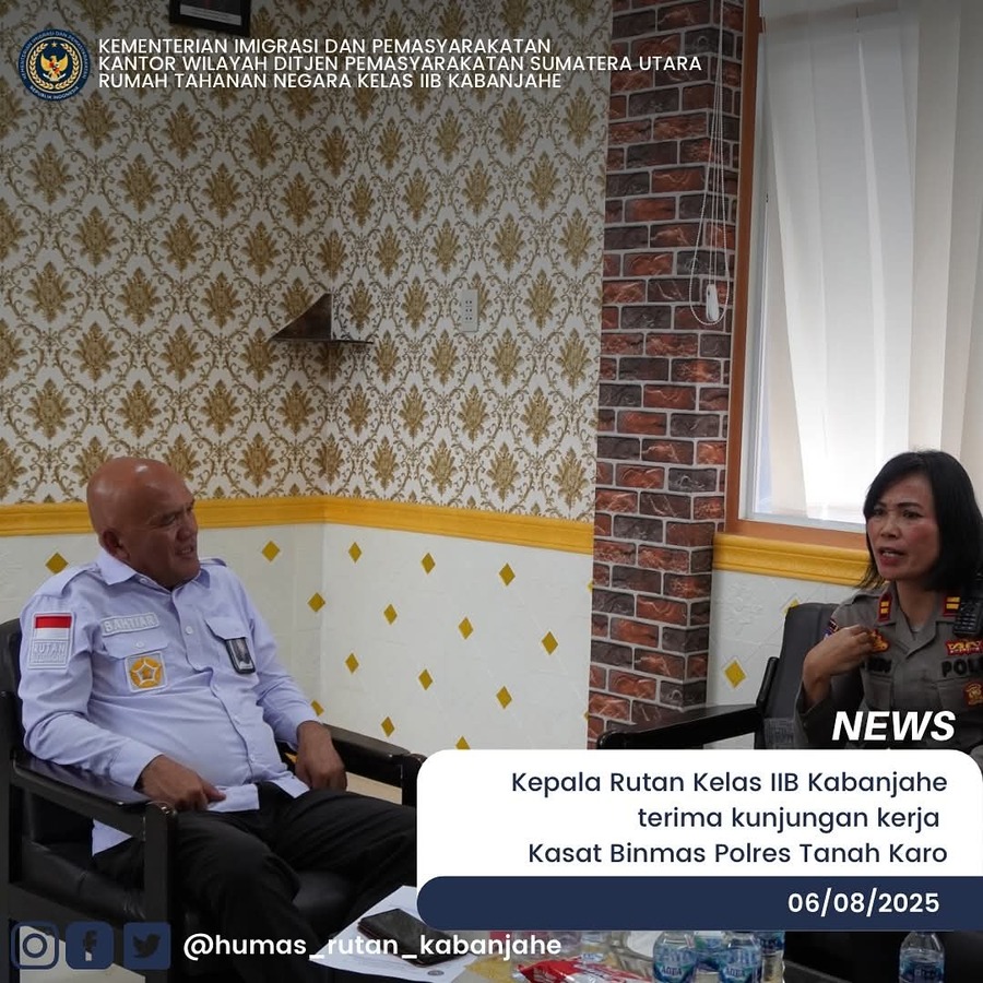 sebarinfo.com,| Kasat Binmas Polres Tanah Karo, Iptu Tina Nainggolan, bersama personil Sat Binmas Polres Tanah Karo mengunjungi Rutan Kelas IIB Kabanjahe. Kepala Rutan Kabanjahe, Bahtiar Sembiring, beserta jajaran menyambut kunjungan ini.