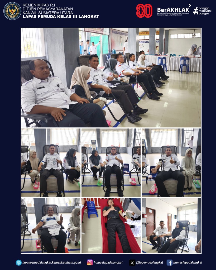 sebarinfo.com, | Dalam rangka memperingati Hari Ulang Tahun Republik Indonesia ke-80, Lapas Pemuda Langkat menggelar kegiatan bakti sosial donor darah bekerja sama dengan PMI Kabupaten Langkat pada Rabu, 20 Agustus 2025.