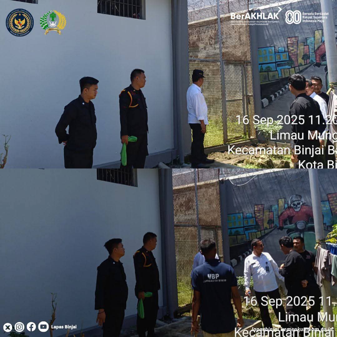 sebarinfo.com, | Kepala Kesatuan Pengamanan Lapas (Ka. KPLP) Pariaman Saragih memimpin tim untuk melakukan kontrol rutin di area Blok hunian Warga Binaan Lapas Kelas IIA Binjai, Selasa (16/09/2025).