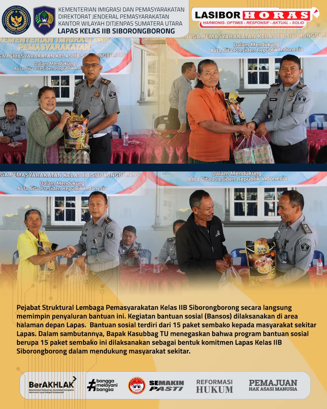 sebarinfo.com, | Lapas Kelas IIB Siborongborong memberikan bantuan sosial kepada masyarakat sekitar untuk mendukung Asta Cita Presiden Republik Indonesia dan meningkatkan kesejahteraan masyarakat.