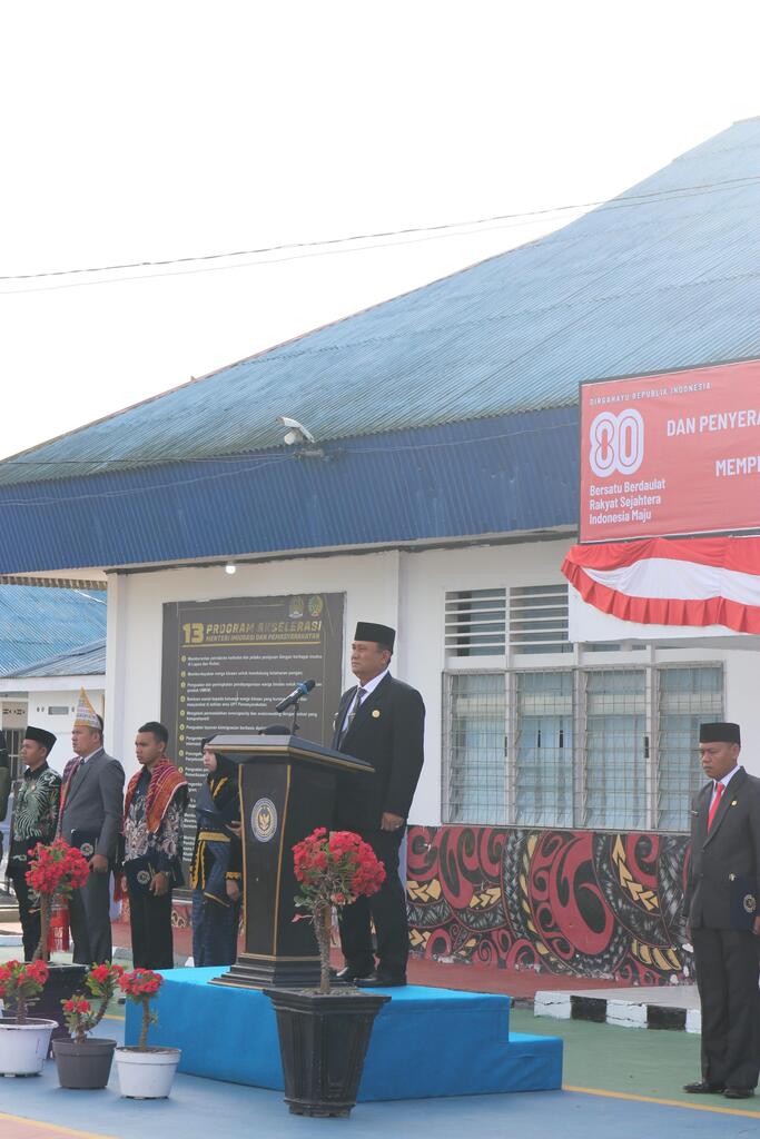 sebarinfo.com, | Wakil Bupati Dairi, Wahyu Daniel Sagala, memimpin upacara peringatan Hari Ulang Tahun Republik Indonesia ke-80 di Rutan Kelas IIB Sidikalang. Ia memberikan remisi secara simbolis kepada warga binaan yang telah menunjukkan perilaku baik dan mengikuti program pembinaan dengan baik.