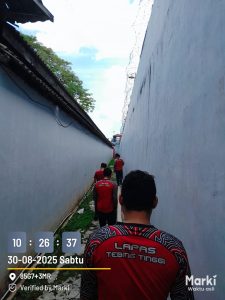 sebarinfo.com, | Lapas Tebing Tinggi melaksanakan kontrol brandgang untuk memperkuat keamanan. Kepala Kesatuan Pengamanan Rudy B. Purba memimpin kegiatan ini.